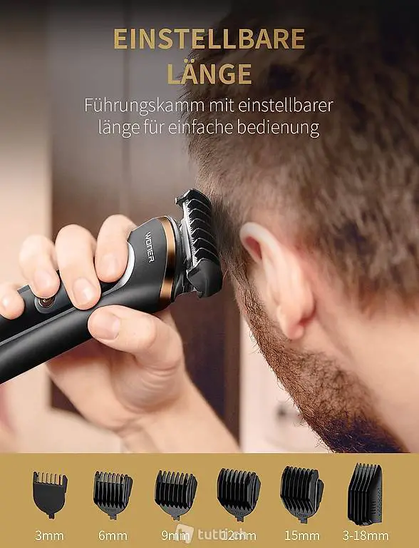 Zubehör: 5 x Aufsätze, 6 x Führungskämme, 1 x