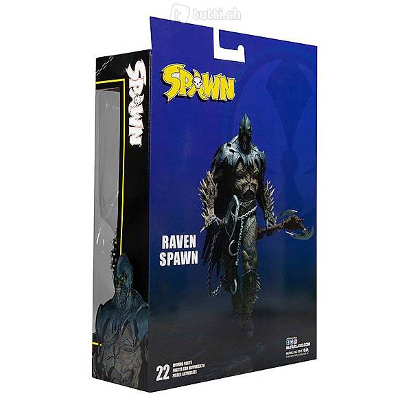 Zum Comic Spawn kommt diese detailreiche, bewegliche Actionfigur Raven. Sie ist ca. 18 cm gross und wird mit weiterem Zubehör und Base in einer