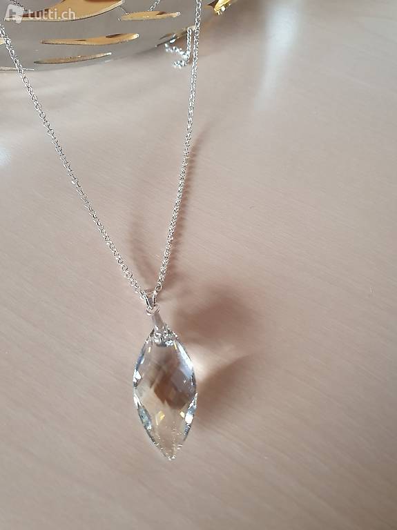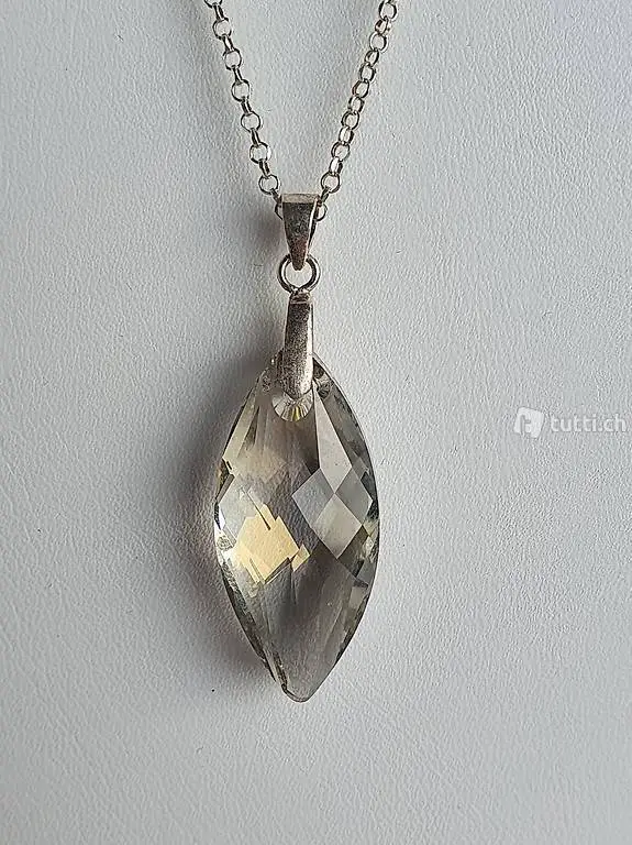 Une belle chaîne en Argent 925 de 42,5 cm à maillons'rollo'de 1.8mm supporte cette belle Navette Swarovski e de 30x14mm Crystal Silver Shade.