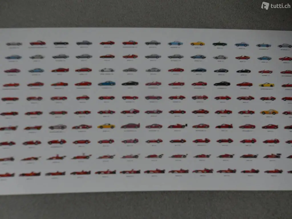 ein Kunstdruck Poster 194cm x 50cm - mit grösster Wahrscheinlichkeit das einzige Exemplar in der Schweiz- top Qualität - mit Abbildungen aller Ferraris gebaut zwischen 1948 - 2010 inkl F1 Boliden (total 267 Modelle! !) - ein super Geschenk für den Fan - gemäss Fotos (Fotos aufgrund der Grösse des Kunstdruckes nicht optimal! Versand wäre möglich, Abholung aber erwünscht è! !
