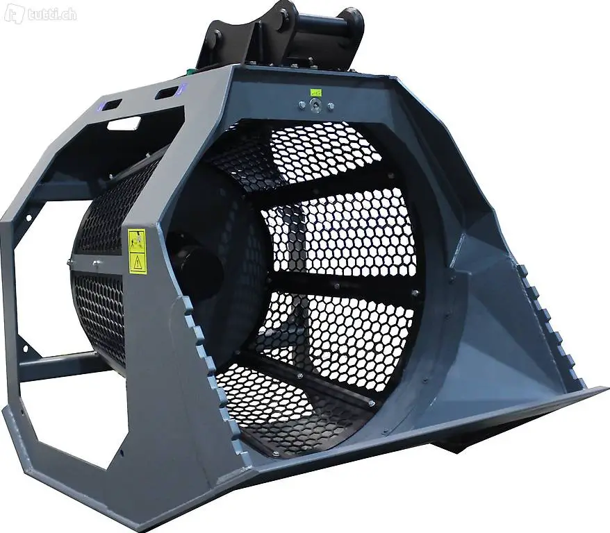 Dank des ergonomischen Designs wird eine konstante Siebleistung erreicht, ohne dass sich das Siebgut in der Verstrebung verkeilt. Das laden von Schuttgütern ist mit der grösseren Messerkante einfach, da keine Querstreben unterhalb den Ladevorgang stören. Die Siebe können innert kürzester Zeit ausgetauscht werden.
