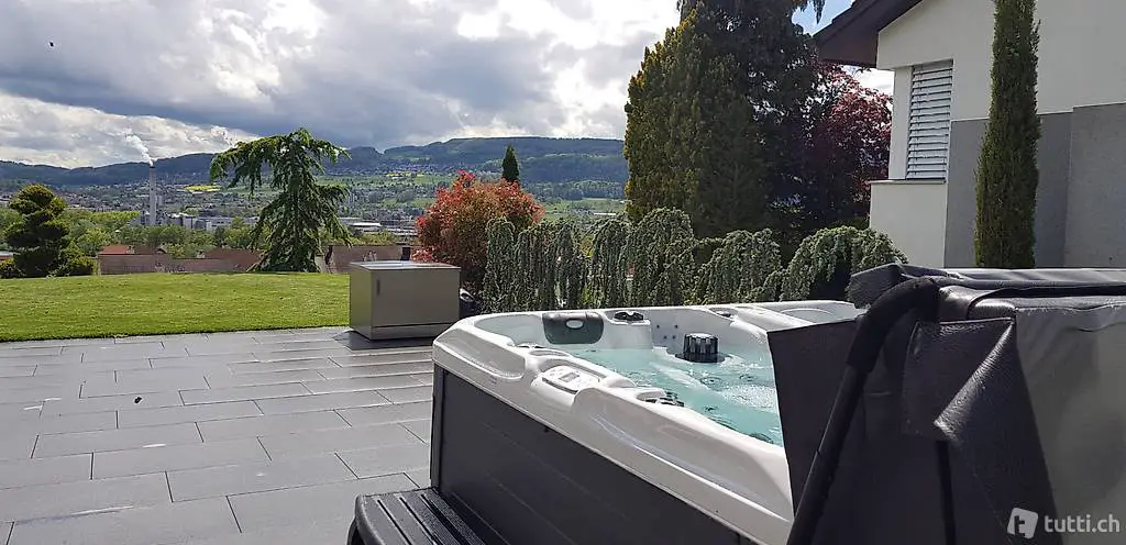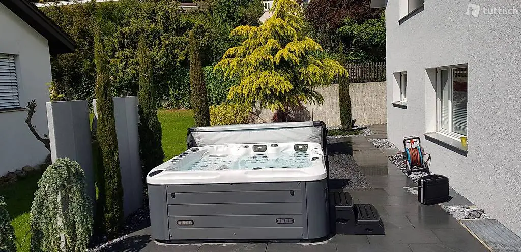 Länge 2.30m | Breite 2.30m | Höhe 0.90m | Düsen: 95 | Luftdüsen: 8 | Balboa | 1'550 Liter | 2'100kg | Hybrid | Ozonator | UV-
