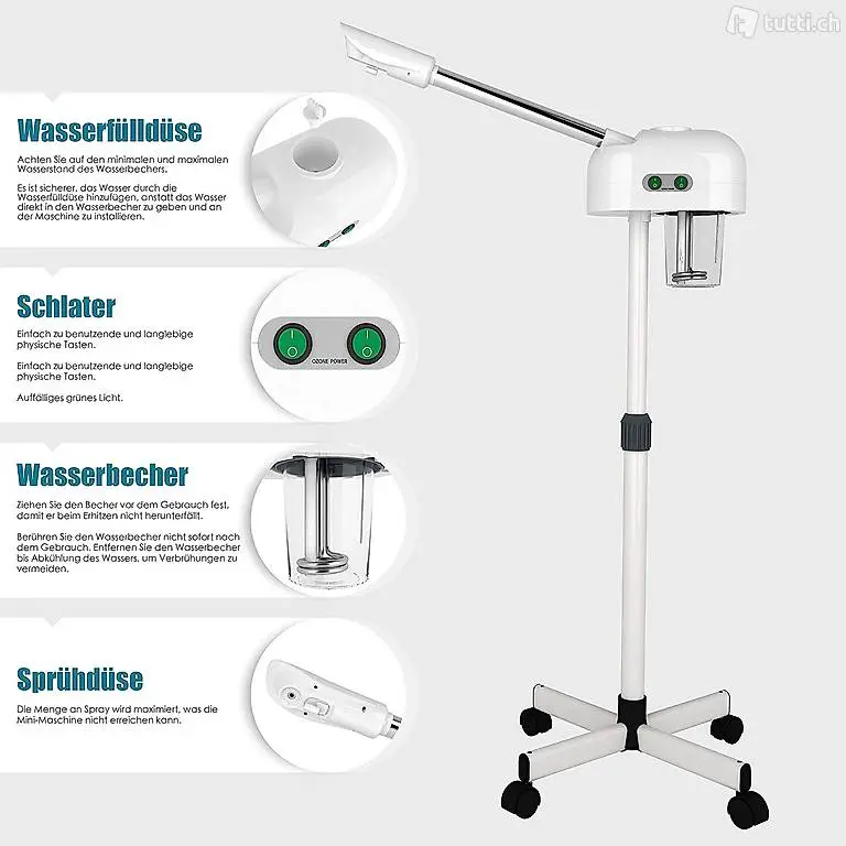 Geeignet für mehrere Orte: Professioneller Gesichtsdampfer, geeignet für Salon und Zuhause. Sie können ein Spa zu Hause geniessen und dabei Geld und Zeit sparen.