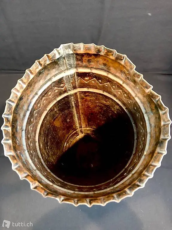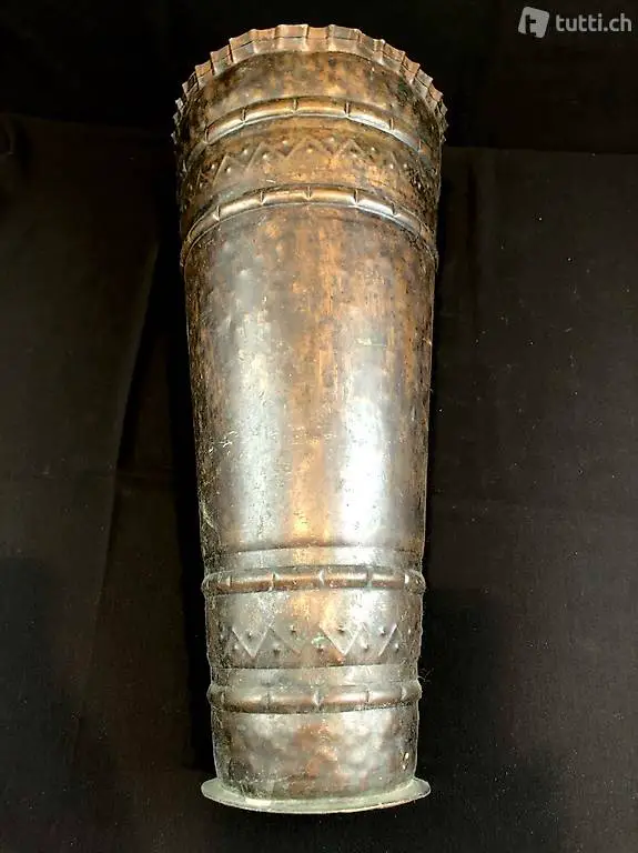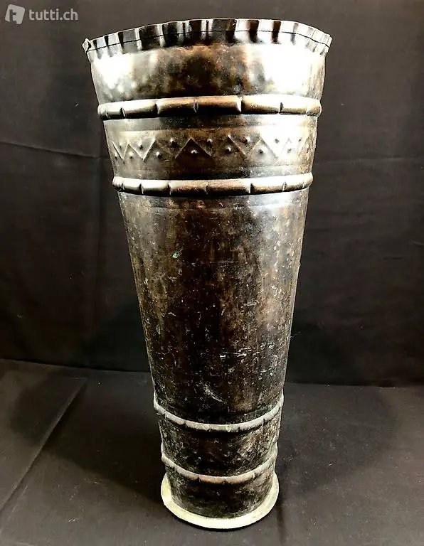 Schöner alter Behälter aus Kupfer, ideal als Bodenvase z.B. für Trockenblumen oder als Regenschirmhalter zu zu benutzen. Durchmesser oben 23 cm und 48,5 cm hoch.