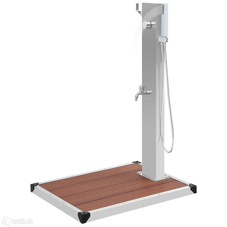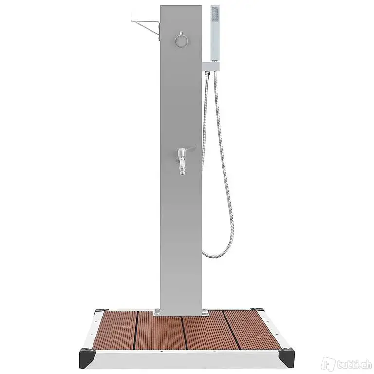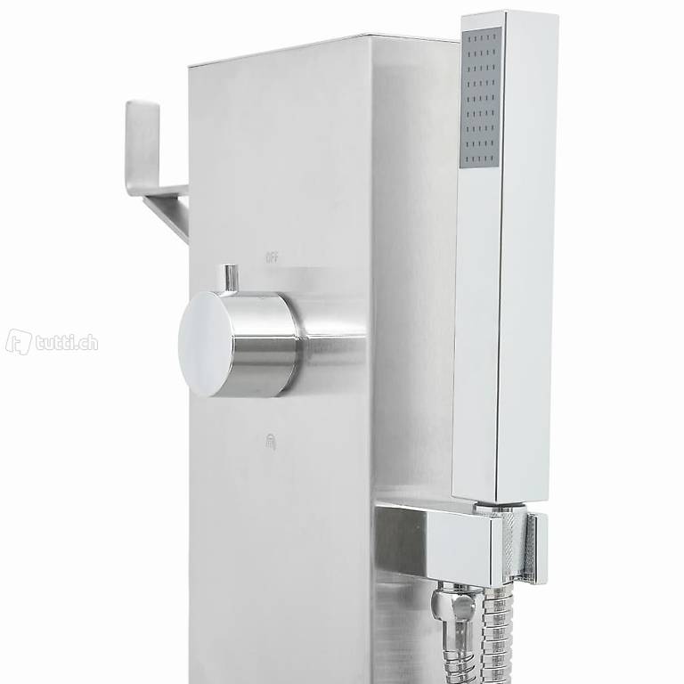Diese Gartenduschhahn hat ein stilvolles Design. In Kombination mit einer eleganten Duschwanne ist dies eine grossartige Ergänzung für Ihren Pool und andere Aussenbereiche. Die Gartendusche besteht aus strapazierfähigem Edelstahl mit gebürsteter Oberfläche, um seine Wetterbeständigkeit zu gewährleisten. Es verfügt über einen Wasserhahn und einen Handbrausekopf, der Ihren Anforderungen an Gartenarbeit, Bewässerung und schnelles Duschen gerecht wird. Es ist auch mit einer Halterung zum einfachen Aufhängen des Wasserschlauchs ausgestattet. Diese
