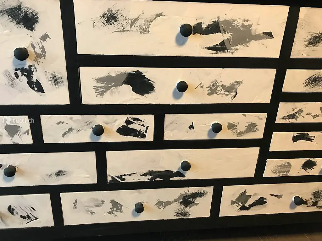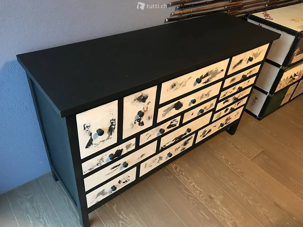 Diese freche und doch so elegante Apotheker-Kommode (Kommode stammt ursprünglich aus dem Möbelhaus Pfister) wurde von mir mit viel Liebe neu gestaltet (umweltfreundliche Kalkfarben / versiegelt) .
