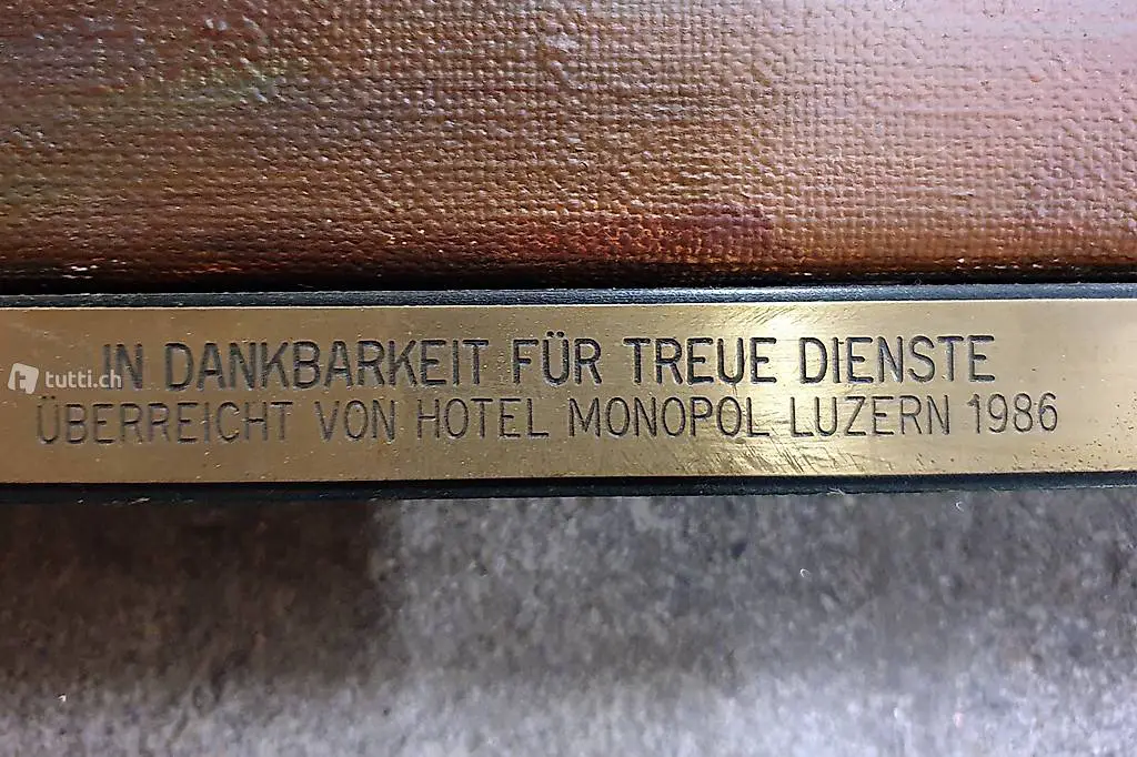 Dieses Originalölbild des bekannten Luzerner Kunstmalers THY EISENMANN war eine Auftragsarbeit des Hotels Monopol, Luzern und wurde für treue Dienste als Geschenk für eine/einen Hotelangestellte (n) überreicht. Das Gemälde ist mit einem sogenannten Schattenfugrahmen gerahmt.