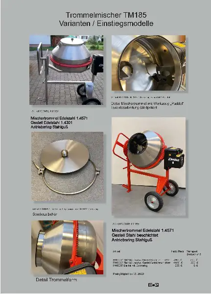 Chargenmischer, Labormischer, Frei – Fall Mischer in Premium Qualität, Made in Germany, Trommel mit 185 L / 300 L oder 400 L Trommelvolumen und optional mit elektronisch gesteuerter Kippsteuerung.