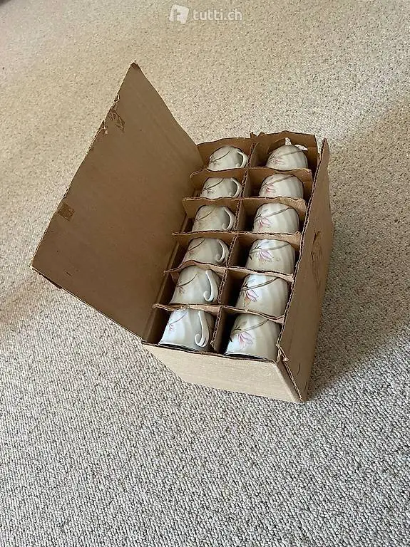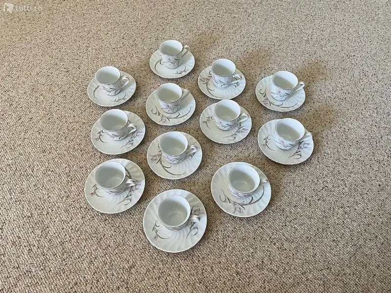 Prächtiges Kaffee - Set, 12 Tassen, 12 Tellerchen, mit tollem Design