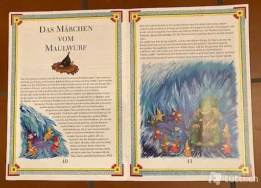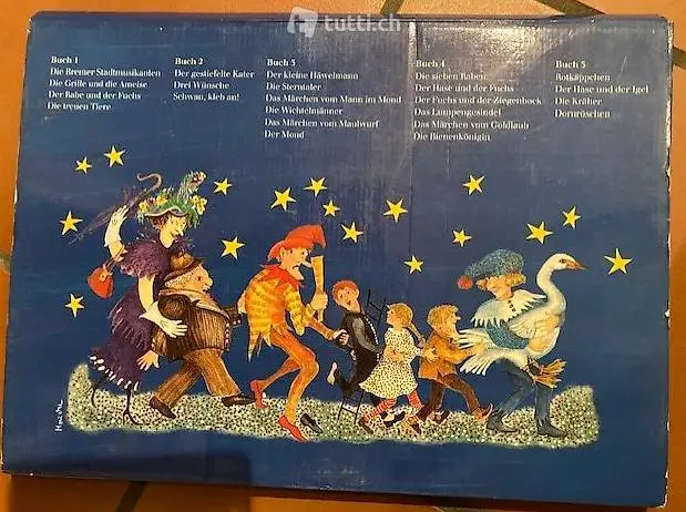 Mappe mit 5 grossformatigen Heften (42cm x 30cm) mit bekannten und weniger bekannten Märchen und kindgerechten farbigen Illustrationen von Mouche Vormstein. Ideal zum Vorlesen. Komplett (Heft 1-5) . Die Hefte sind in gutem Zustand.