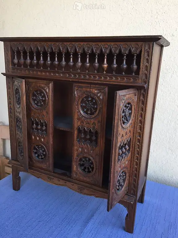 Altes schön gearbeitetes Miniatur Möbel aus Holz, welches früher wohl als Modell / Muster oder als Puppenmöbel verwendet wurde.