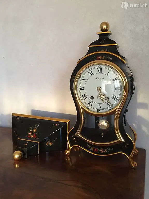 Gut erhaltene Pendule Uhr aus dem Hause Bucherer schwarz / gold farben
