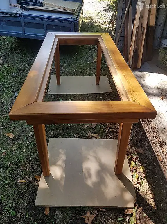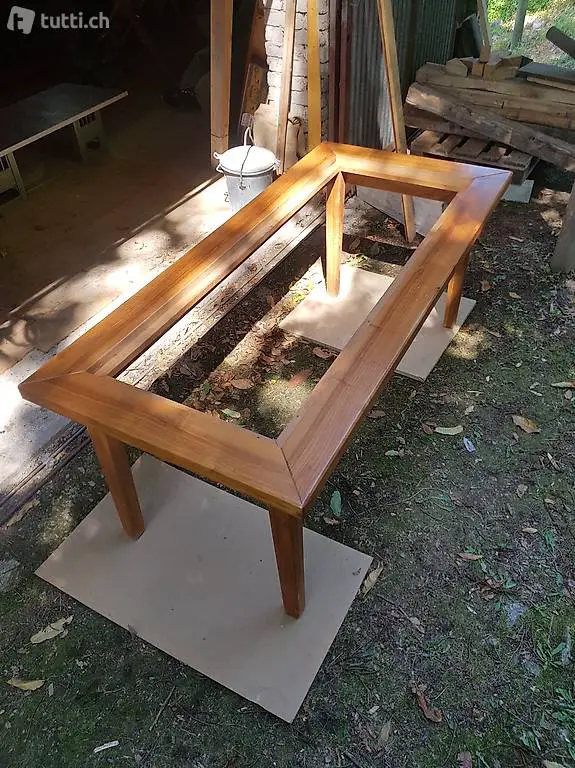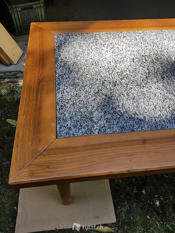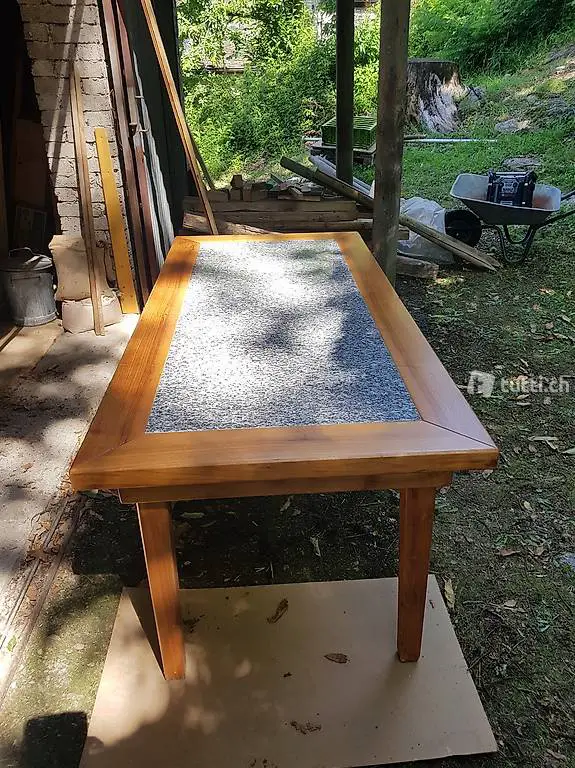 in noce 'nostrano' della regione. 195x90x6, con parte centrale in granito della Riviera 168x63,5x3 .Per info 077 418 96 40