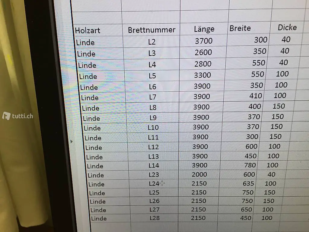 Lindenholz lufttrocken, Dicken 40 bis 150 mm.