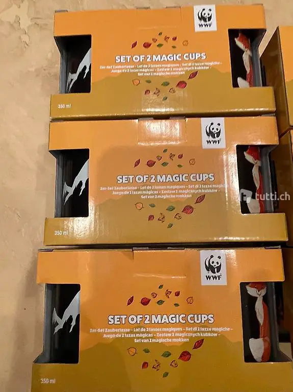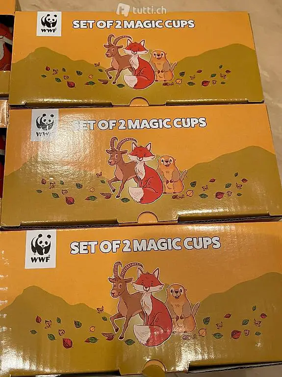 12 stk. cups henkeltassen mit fuchs- & bergsujet, neu! original verpackt!