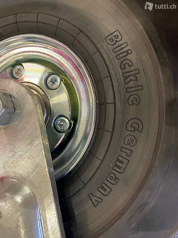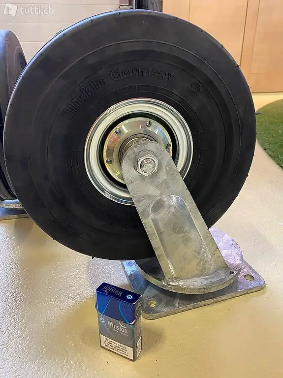 Zu verkaufen: 4 neue schwerlast Räder mit super elastische Vollgummireifen! ! Drehbar 360? mit abschraub Platte verzinkt! ! Sonder Anfertigung Tragkraft pro Rad 1500 kg! ! Mit fett Schmierung . Höhe des Rad 38 cm Pneu Breite 10 cm . Neupreis pro Rad: 1390.-! !! Preis bei uns alle 4 Stück: 1990.- tel 079 380 09 90.