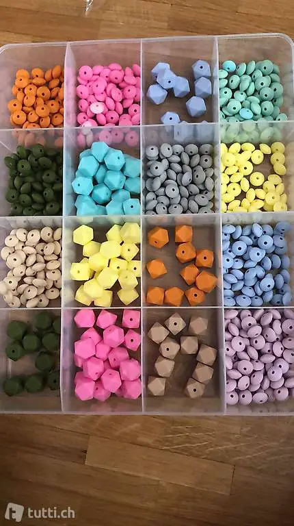 Unsere selbstgemachten Nuggiketteln gibt es in verschiedenen Farben (siehe Perlen auf Bilder) . Diese eigenen sich perfekt als