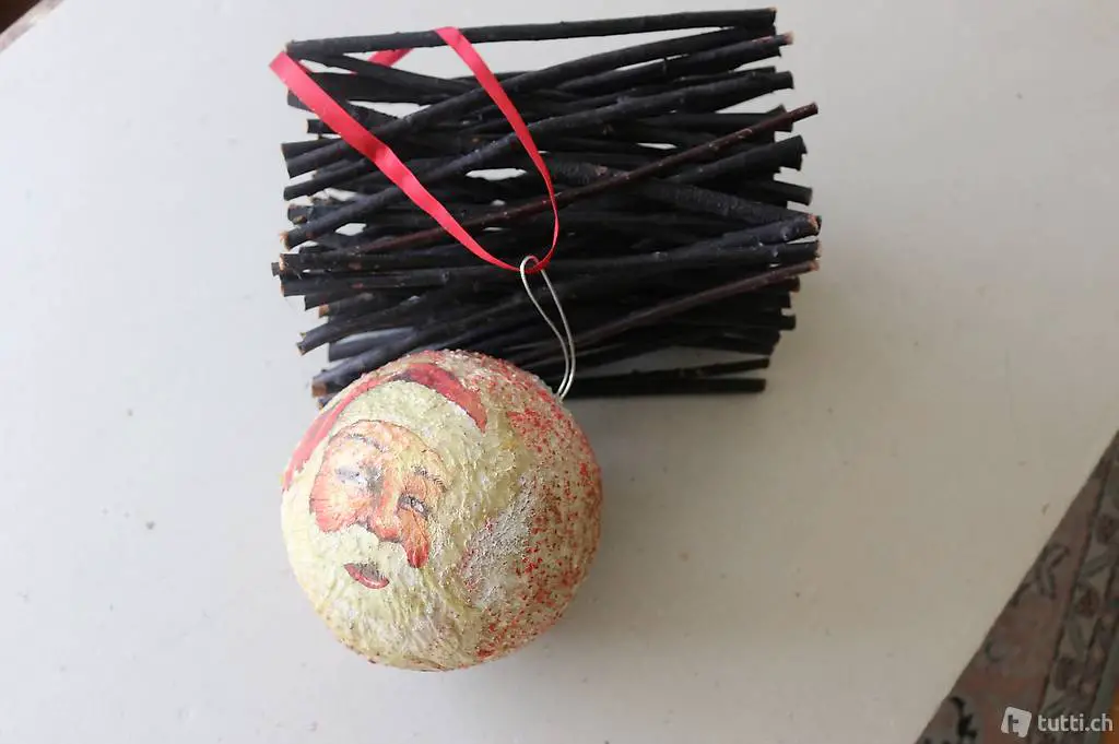 Kugel handgefertigt, Drm. 18 cm, Holzbürdeli 25x14x17 cm. Preis exkl. Fr. 7.-- Porto. Kann nach Absprache auch in 8494 Bauma abgeholt werden.