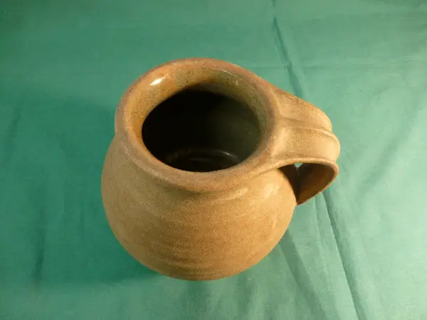 Wahrscheinlich ein Krug von Meisterkeramik (siehe Link: https: //ceramica-ch.ch/glossary / duebendorf-stettbach-heinrich-meister-und-gertrud-meister-zingg-toepferei-1920-1961/#q=*%3A*) .