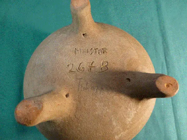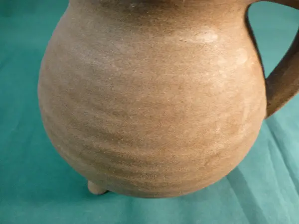 Brauner Keramikkrug mit drei Füssen und Henkel