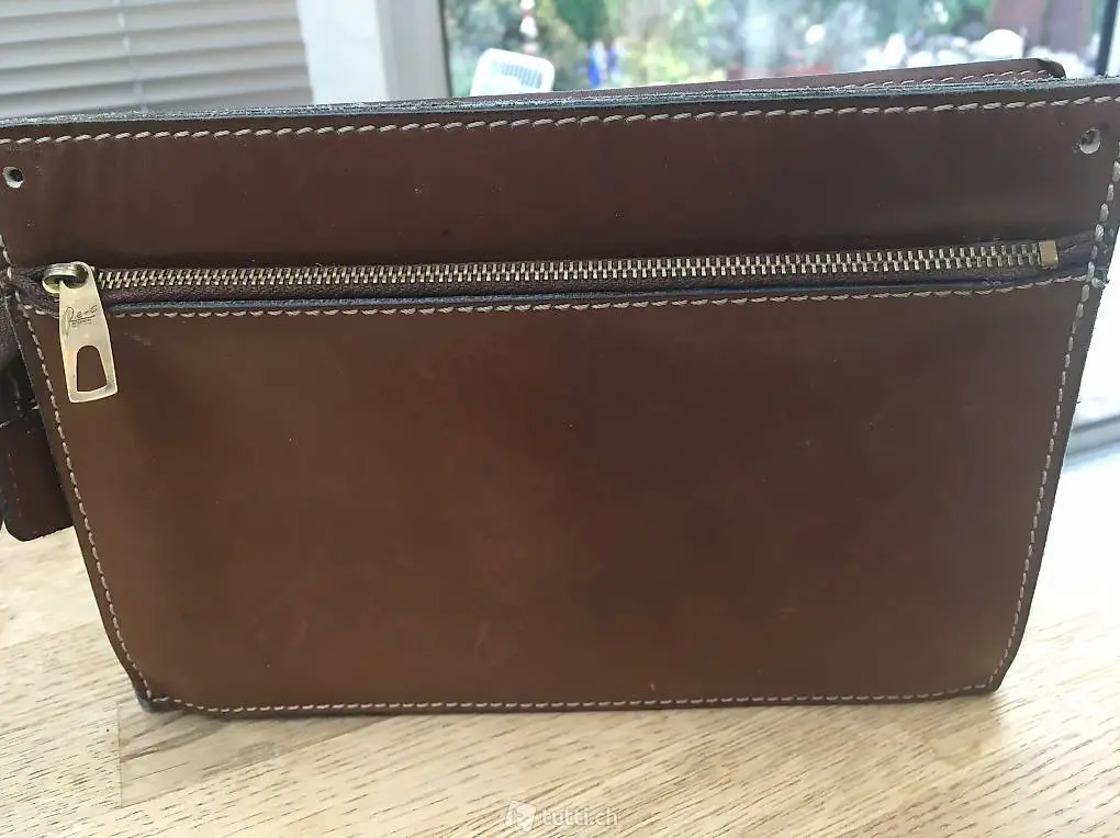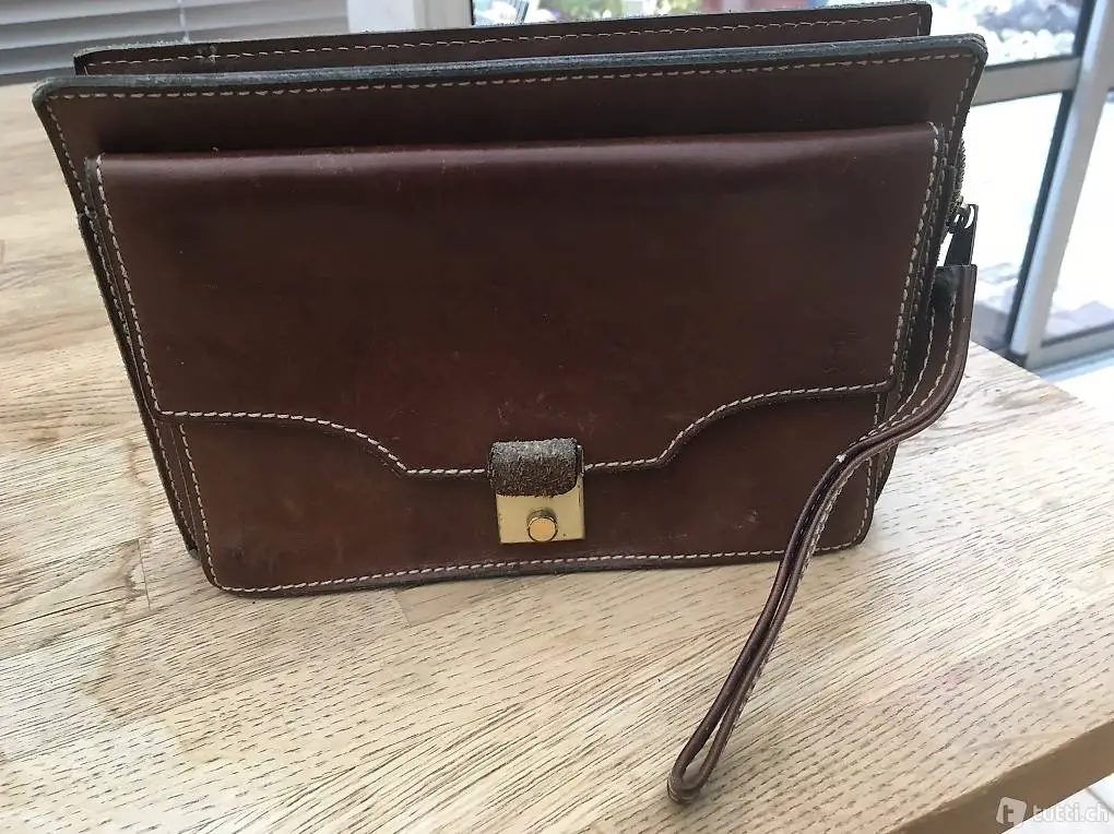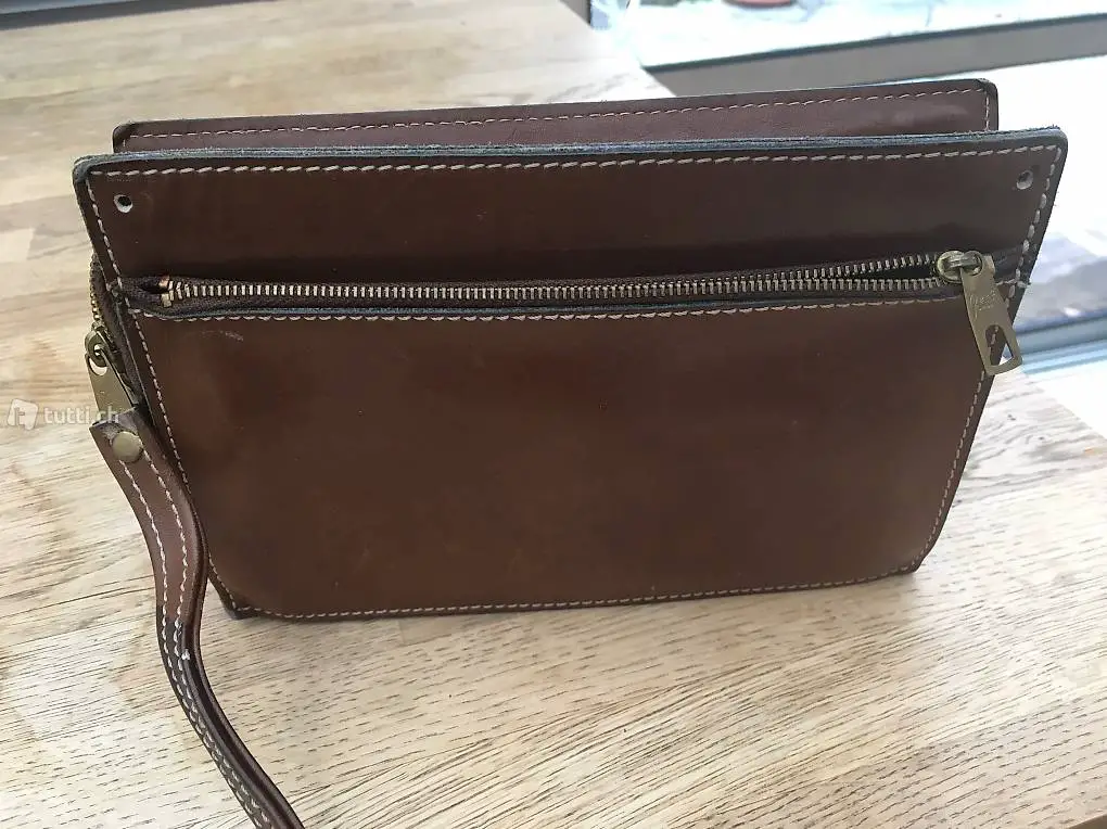 Rarität! Schöne alte Herrenhandtasche welche auch bei Damen sehr beliebt sind, Leder, wunderschön verarbeitet, Masse: 22 x 15 x 6 cm, plus Versandkosten,