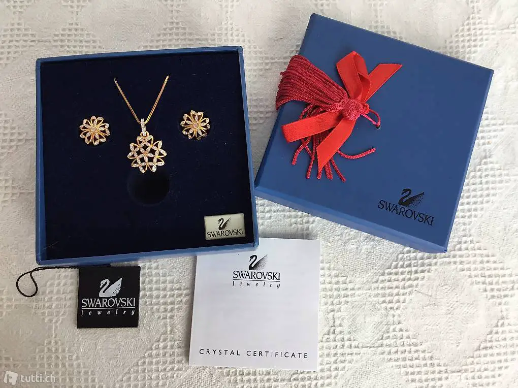Sehr schönes, älteres Swarovski Set aus Kette mit Anhänger und Ohrclipse. Kette ca 41 cm Lang, beides ungetragen siehe Photos. Porto CH sfr. 7.-