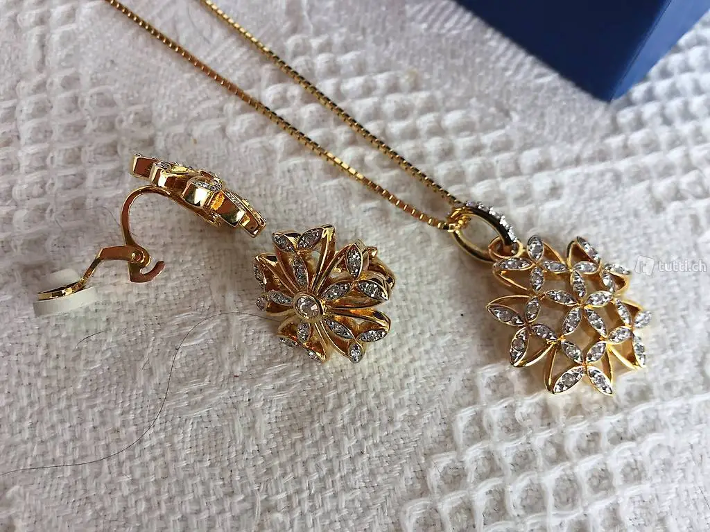 Ältere Swarovski Kette mit dazugehörenden Ohrclipse