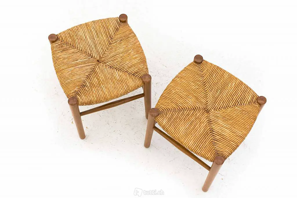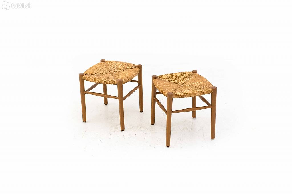 Schöne Hocker mit geflochtener Sitzfäche, eignen sich gut zum Sitzen oder als Hocker für Dekorationen,