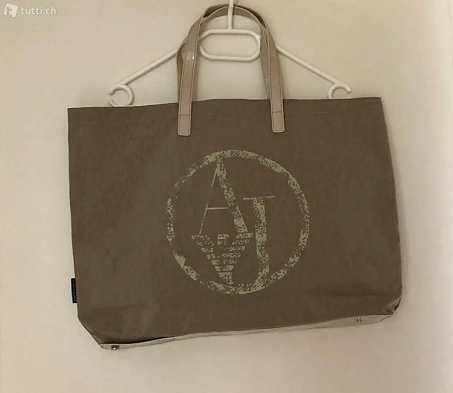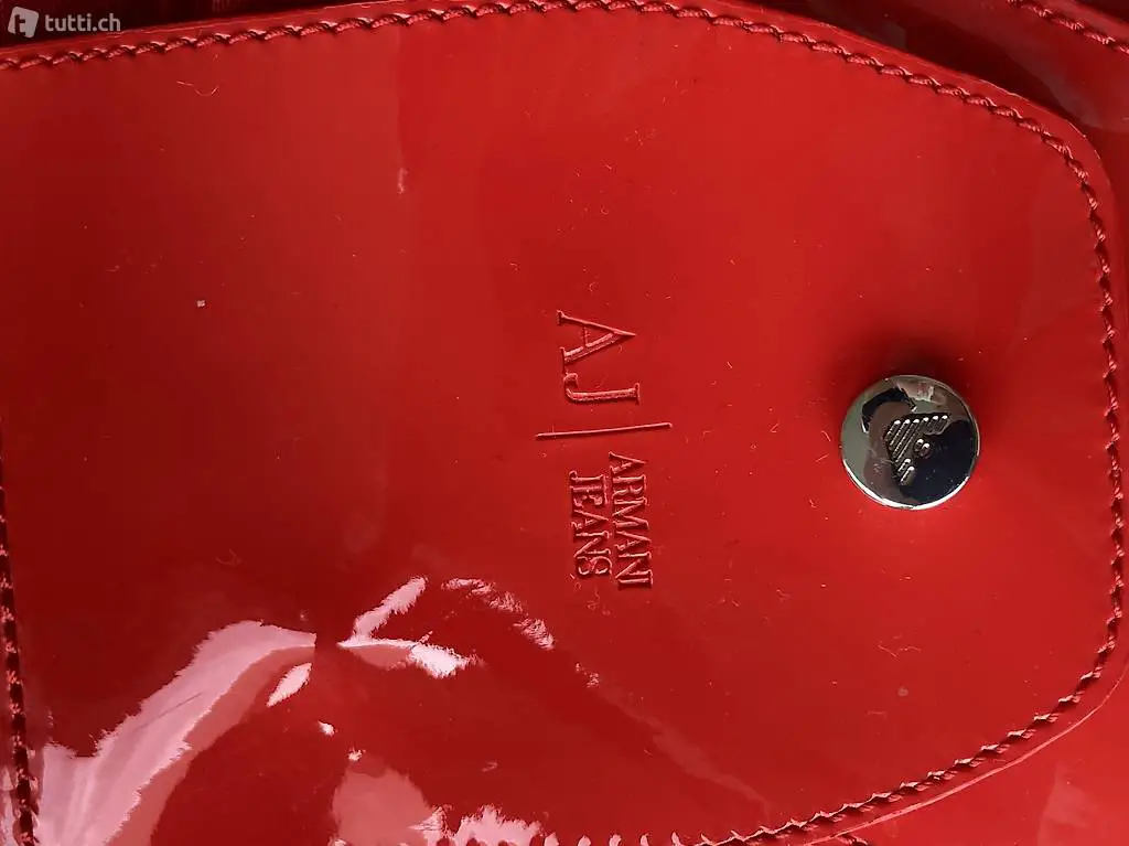 sehr schöner, ARMANI JEANS Shopper, rot, l 56cm, b 39cm, Tiefe 9cm, mit Druckknopfverschluss, 80% Polyester, 20% Viscose, mit Etikette und Faltanleitung, grosses ARMANI Logo AJ auf der Vorderseite, ARMANI Jeans Logo Schild, eingenäht auf der Seite, NEU, nicht geöffnet, nicht getragen, (grauer abgebildeter Shopper ist nur zur Ansicht und nicht verkäuflich)