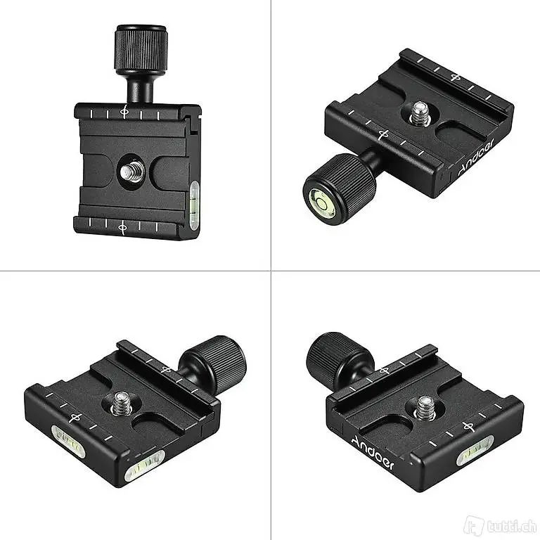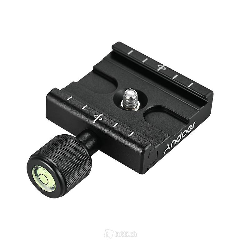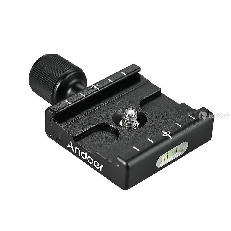Andoer QR-50 Schnellwechselplatte Klemmadapter mit eingebauter Wasserwaage für Arca Swiss RRS Wimberley Stativkugelkopf mit Standard 1/4" Gewinde, Skalenplatte und eingebauter Wasserwaage, sehr bequem zu bedienen. Backe kann geöffnet werden von 37mm bis 42mm, passend für alle Arca Style Platten wie RRS, Wimberley, Jobu Design, Arca Swiss, Kirk, Markins, etc.