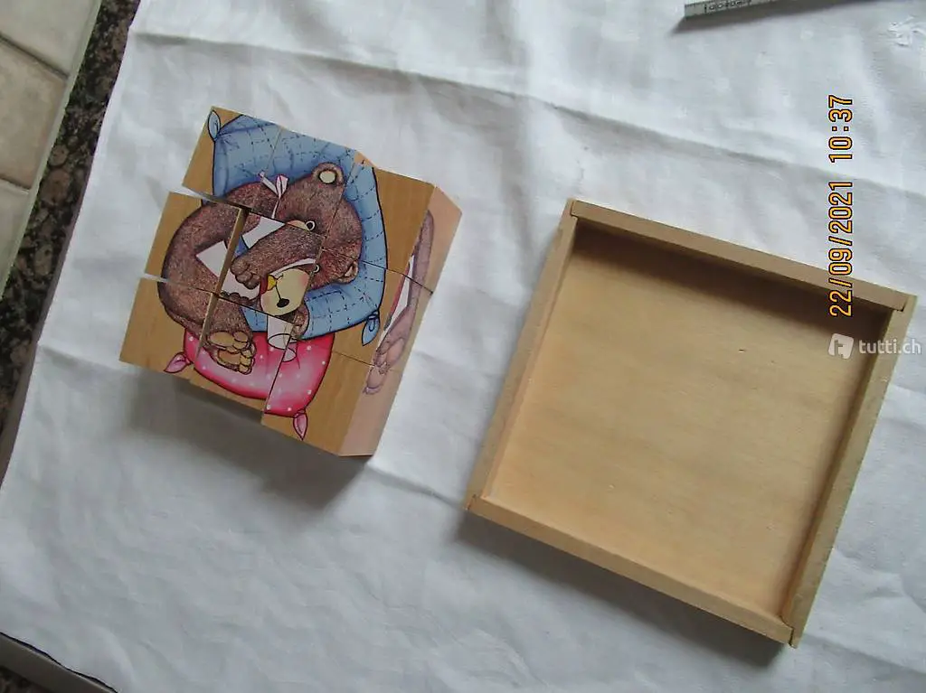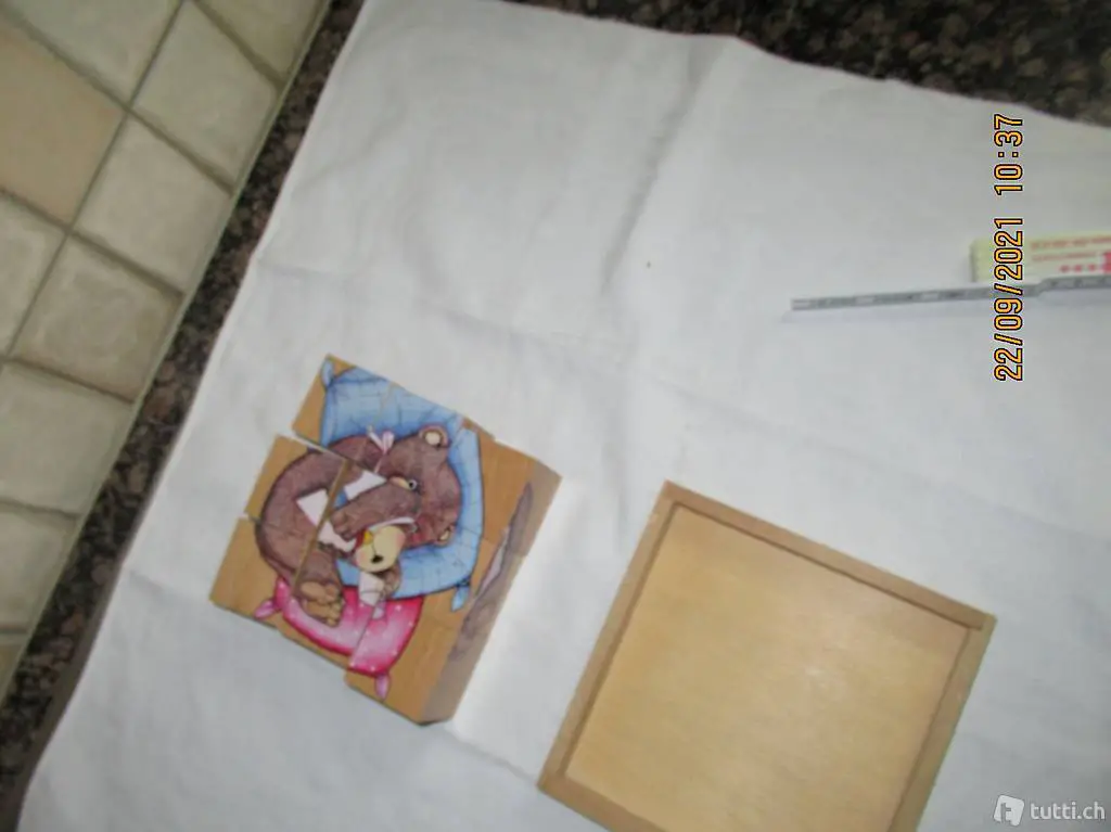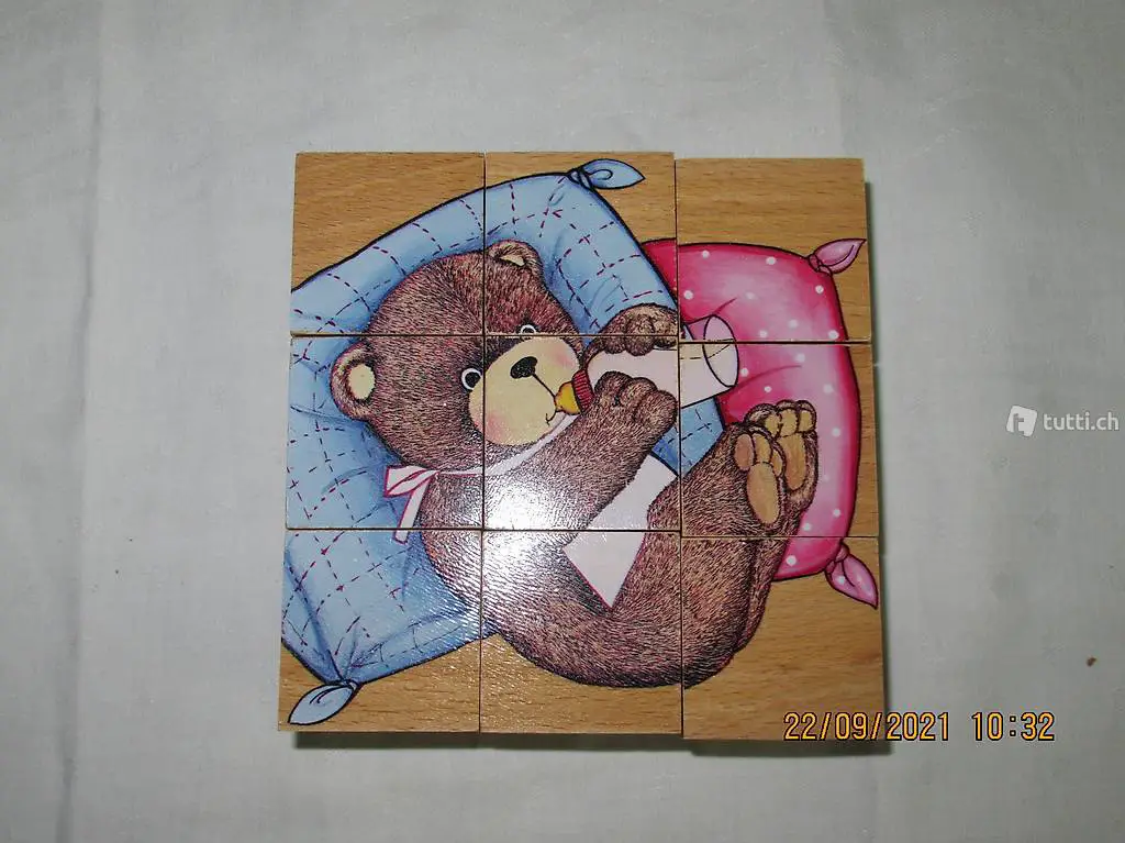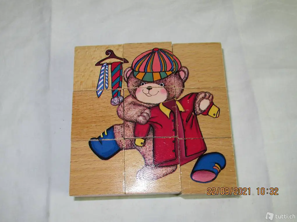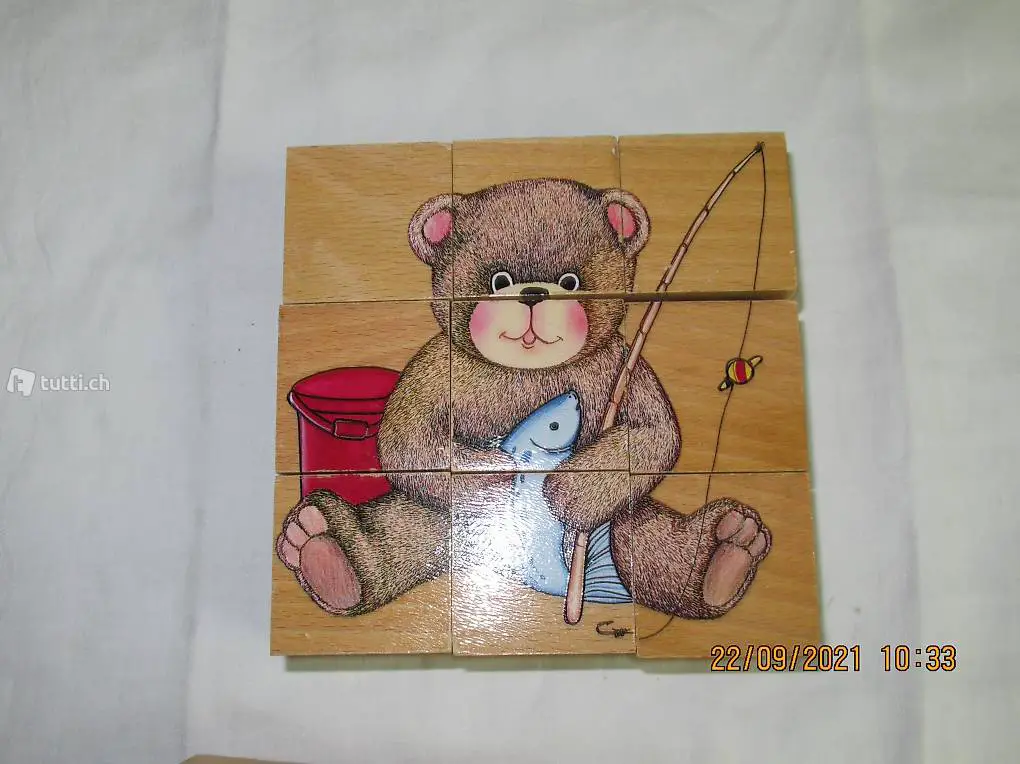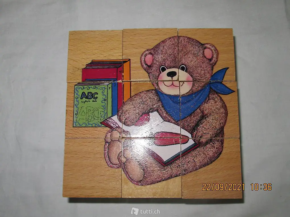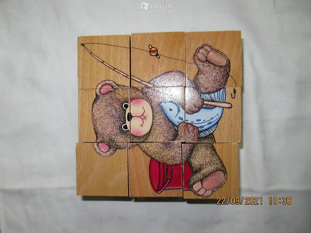 alles mit Bärenmotiv, 9 Holzwürfel, massiv, Buche? Jeder Würfel mit 6 verschiedenen Bildern,