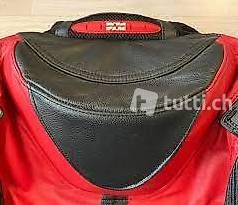 Der sorgfältig abgestimmte funktionale Materialmix aus 0,6 bis 0,8 Millimeter starkem Känguruleder, Schoeller-Keprotec-Stretcheinsätzen und CoolMax-Funktionsfutter machen diese Kombi zu einem echten Allrounder für Rennstrecke, Autobahn und Landstrasse. In Rot/Schwarz/Weiss."