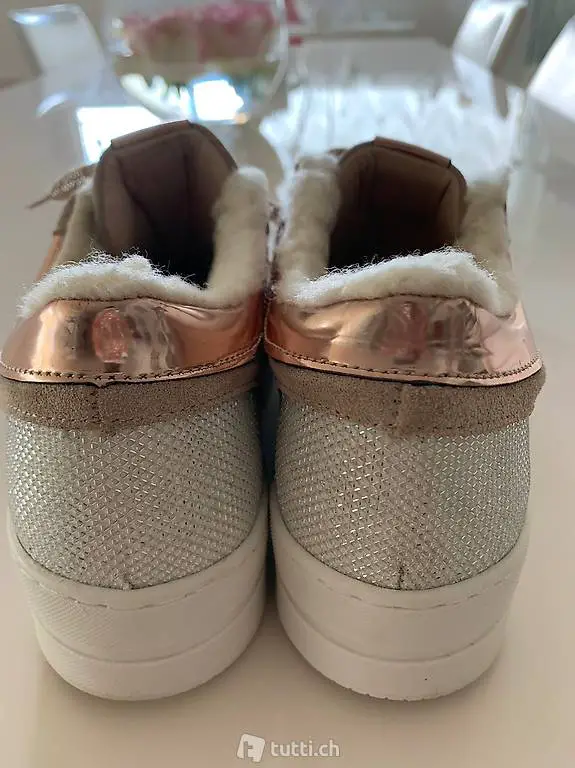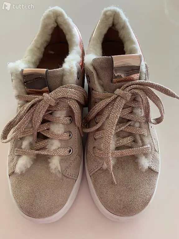 Velourleder mit Kunstpelzabschluss und rosegold details perfekt als übergangs