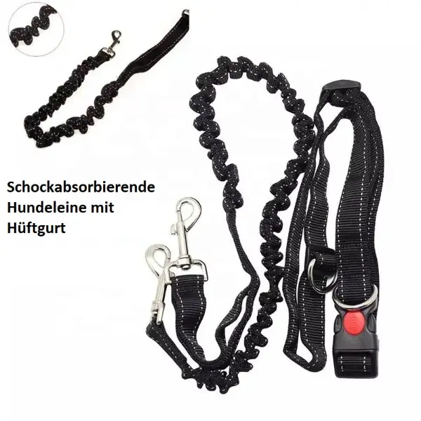 Durch den Hüftgurt wird der Zug des Hundes gleichmässig auf die Taille des Hundeführers verteilt und das schockabsorbierende Band (Expander) verhindert gleichzeitig ruckartiges Ziehen des Hundes.