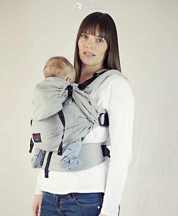 L'Emaibaby Baby Carrier è una vera combinazione tra telo e marsupio. Il tessuto non si increspa a contatto col corpo; la parte posteriore forma una fascia che si adatta perfettamente al bambino.
