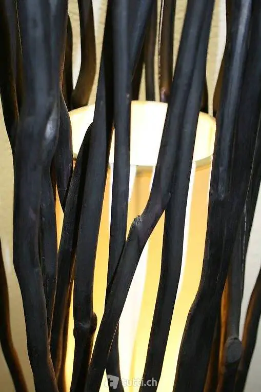 mit Holzästen verziert (Handarbeit) , schwarz eingefärbt, Innen: Zylinder