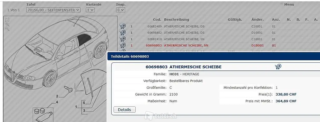 Seitenscheibe links Alfa Romeo GT 60698803 Neu