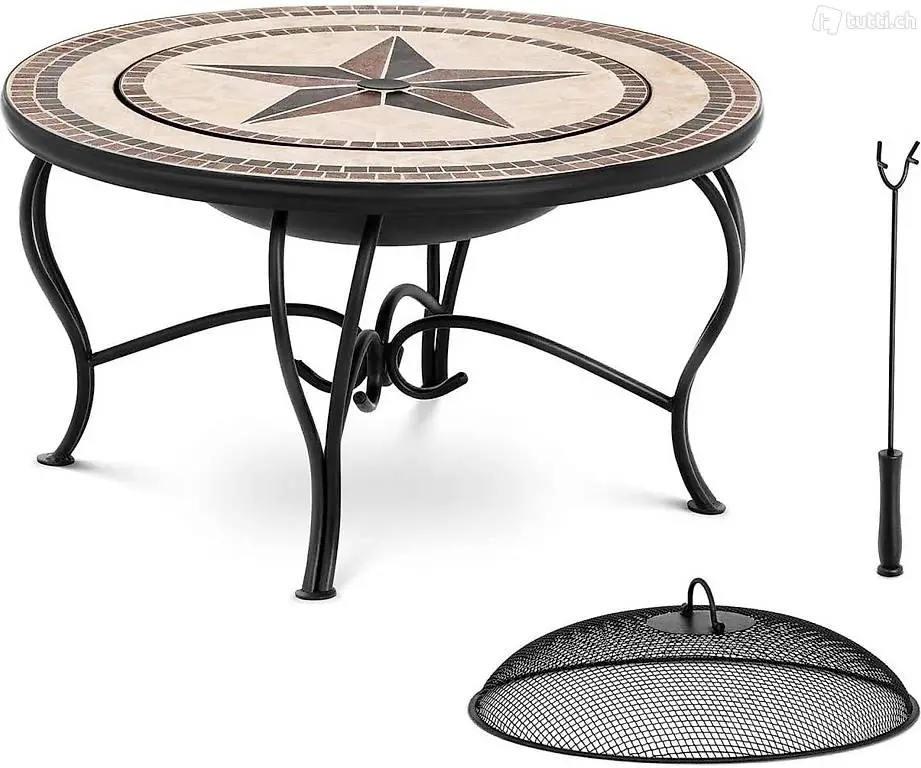Feuerschale 2 Roste, Abdeckung, Schürhaken,