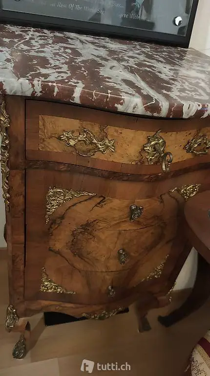 Antike Kommode / Marmor mit Beschlägen.