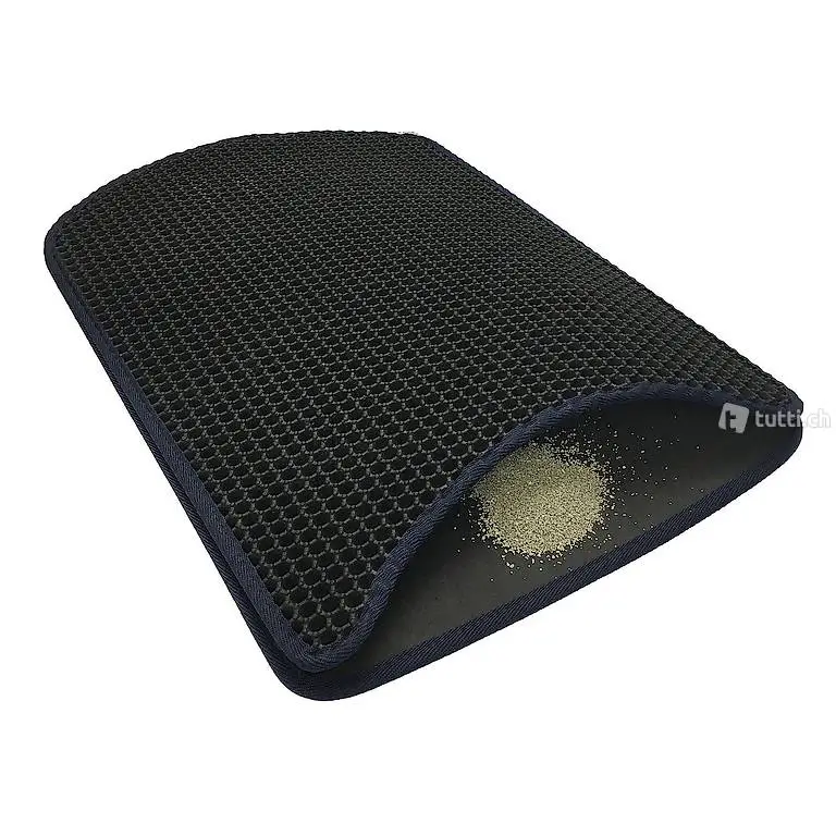 Comodissimo tappetino / setaccio da toilette. Nuovo. La lettiera che rimane attaccata alle zampe del gatto viene catturata dal tappetino all'uscita della toilette e poi facilmente può essere rimossa aprendo il tappetino / setaccio. Dimensioni: 60x39 cm.