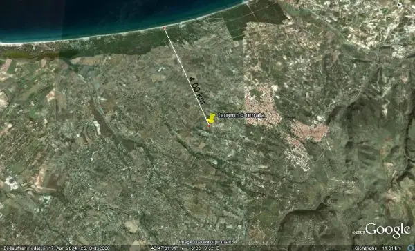 Der Stromanschluss befindet sich am Rande des Grundstücks. Das Land liegt in einer sehr günstigen Gegend neben der Provinzstrasse 25, etwa 2 km von Sorso und 9 km vom Meer entfernt. Das Land ist ganz flach. Seine Lage ist strategisch, so, dass Sie in nur 10 Minuten das Meer mit seinem grossen 22 km langen Strand mit Pinienwald erreichen können, und in weniger als einer Stunde können Sie die schönsten und berühmtesten Strände Nordsardiniens erreichen.