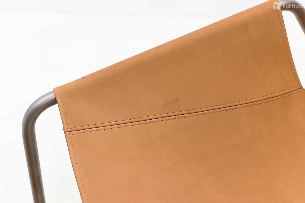 Schlicht, klar und komfortabel - der schweizer Designer Frédéric Dedelley entwarf 2010 für Atelier Pfister den Les Mossettes Sessel und Ottoman. Eine Strassensperre in Tokio hat den Designer die Inspiration für das Sitzmöbel Les Mossettes gegeben. Das gebogene Stahlrohr verleiht dem Möbel Stabilität, das lockere Lederpolster bringt Leichtigkeit ins Spiel, ähnlich einer Hängematte.