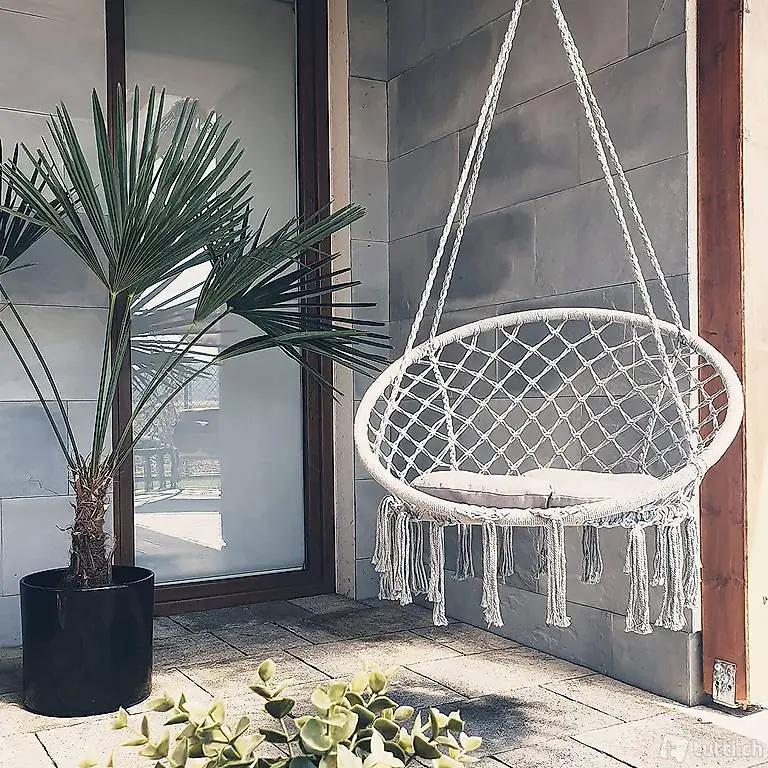 Hängestuhl in Makramee-Design Indoor Outdoor (Grau)