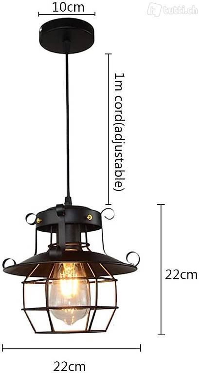 Retro Hängelampe aus Eisen, Retro Hängelleuchte, Farbe: Schwarz, Fassung: E27