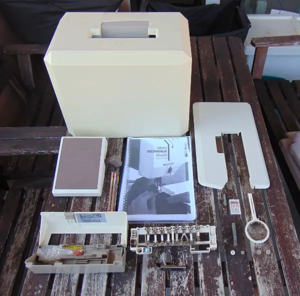 Mit diversem Zubehör: Schutzhaube, Fussanlasser, Netzkabel, Nadeln,