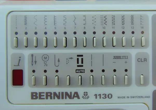 Mit 34 verschiedenen Stichprogrammen: Gerade, Zickzack, ausgenähte Bogennaht, Blindsaum, Muschelkantenstich, Dreifach Zickzack, Wabennaht, Zierstiche, Overlockstich, ... siehe Bilder 2 und 3.