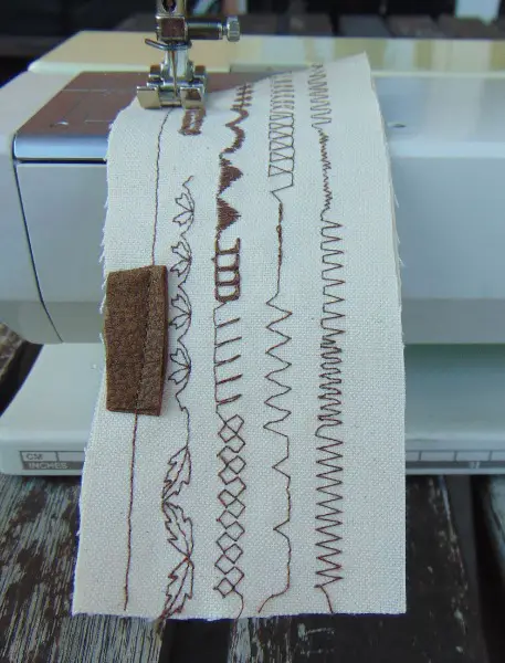 Leder oder Blachenmaterialien, siehe Bild 4. Mit Nadelposition oben oder unten, Freiarm, Rückwärtsnähen, Licht, Knopflochautomat, eingebauter Fadenspannung, variable Stichlänge und -breite, ...
