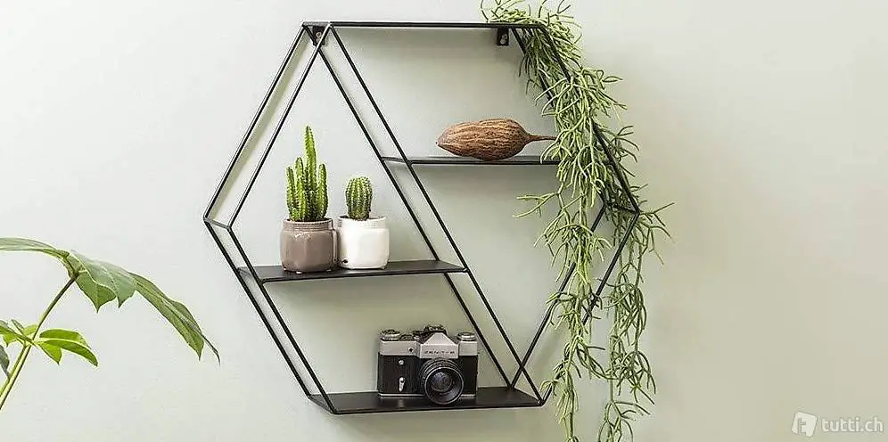 Wand: Das Metallregal sieht nicht nur als Wanddeko gut aus, die vier Etagen aus Metall bieten auch genug Platz für die kleinen Dinge. Beispielsweise können Sie nicht nur Ihre Gewürz
