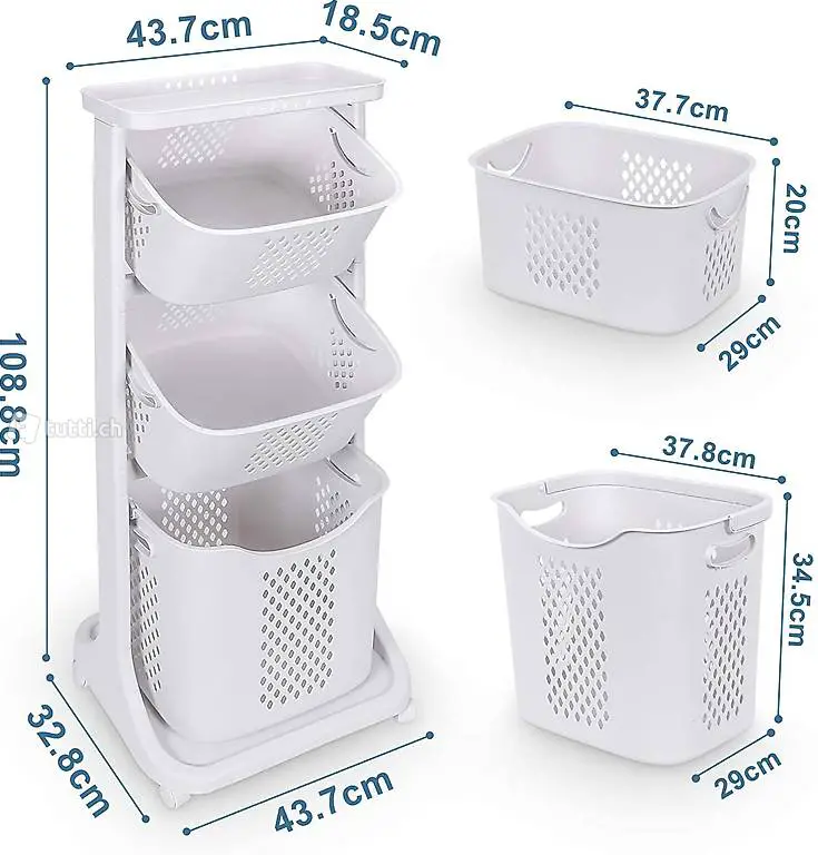 1 x Basis 1x Korb für Dreckwäsche 2x Aufbewahrungskörbe 1x Ablage