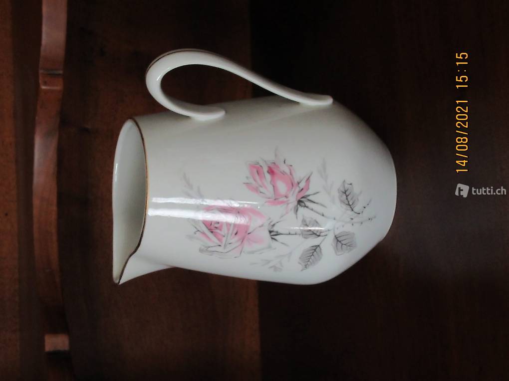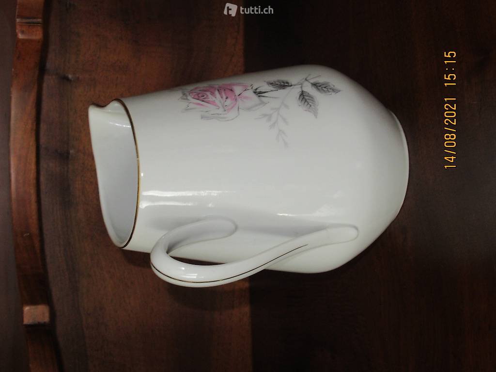 Porzellan mit wunderschönem altrosa Rosenmotiv, Handbemalt, Inhalt 1 Liter, von um 1940, nummeriert, siehe Bilder, stammt aus